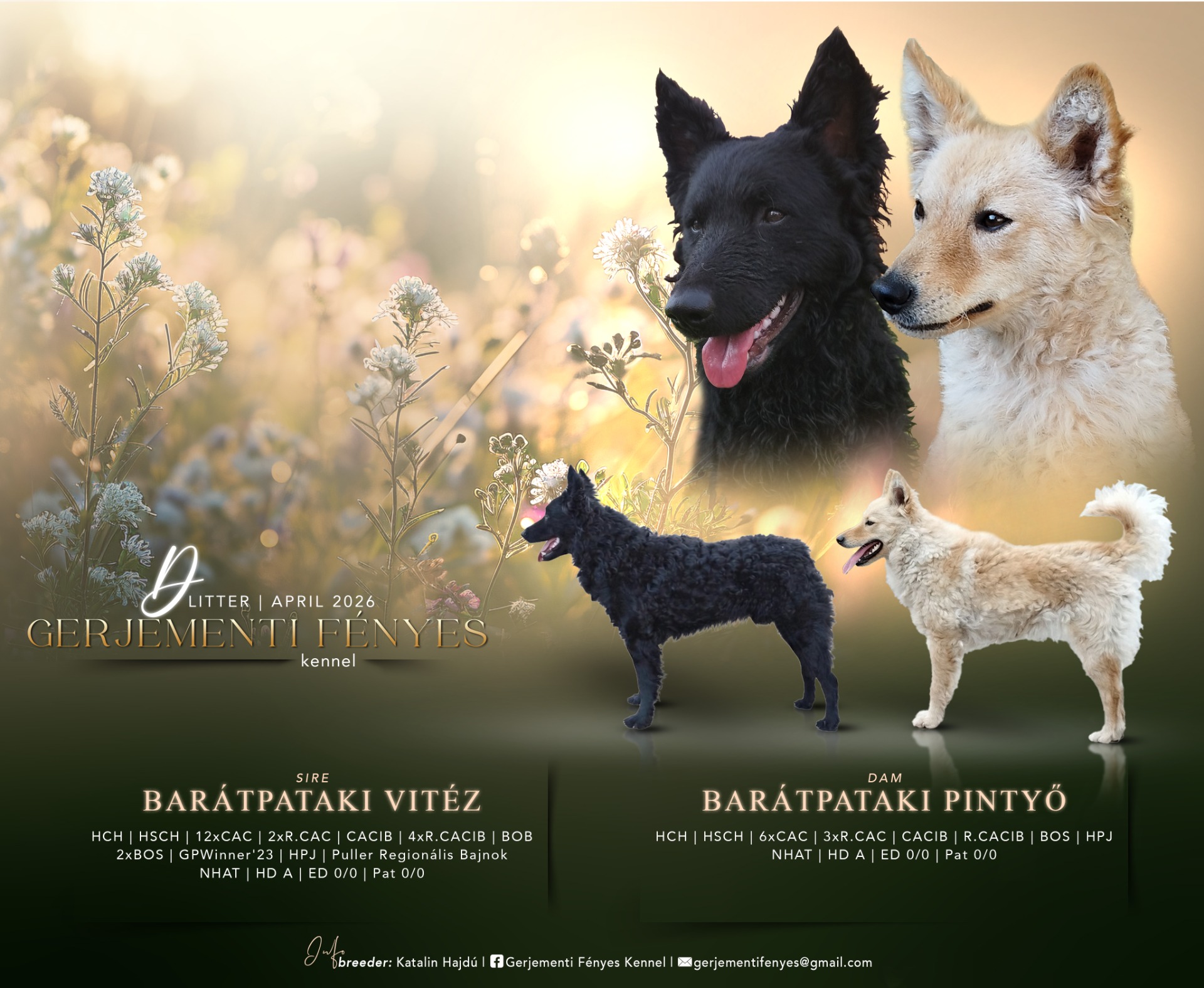 Március 31-én megszületett a Gerjementi Fényes C alom Barátpataki Vitéz és Barátpataki Napfény párosításából. A alomban 4 szuka látott napvilágot.